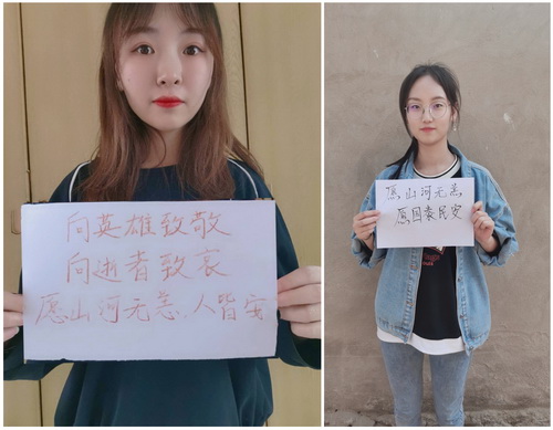 同学们通过默哀的形式向英雄们致敬,悼念逝世国人!