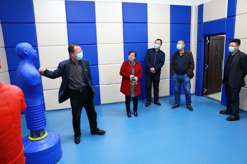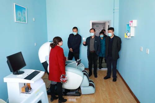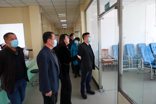 在校医院,调研组了解到在疫情期间的改造中,我校校医院在一楼设了“三区二通道”,并特别配备自带卫生间的留观室和放射线诊室。李长福对我院校医院的疫情防控常态化管理以及校医院的环境改造表示肯定。