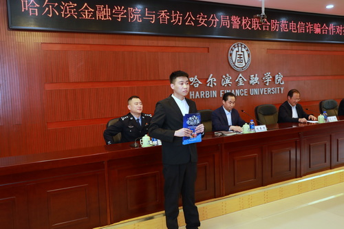 为全面贯彻党的二十大精神,结合学院深入开展学习贯彻习近平新时代中国特色社会主义思想主题教育,为做好学院安全稳定工作,2023年5月11日,哈尔滨市公安局香坊分局与我校共同举办警校联合防范电信诈骗合作对接仪式。党委书记刘小辉,党委副书记刘景顺,党委委员、工会主席王忠国,香坊区副区长、香坊公安分局局长王晓刚,香坊公安分局政治处主任周嘉琳,铁东派出所所长金鹏吉,学工部、团委、保卫处、各系负责同志参加会议,会议由党委副书记刘景顺主持。